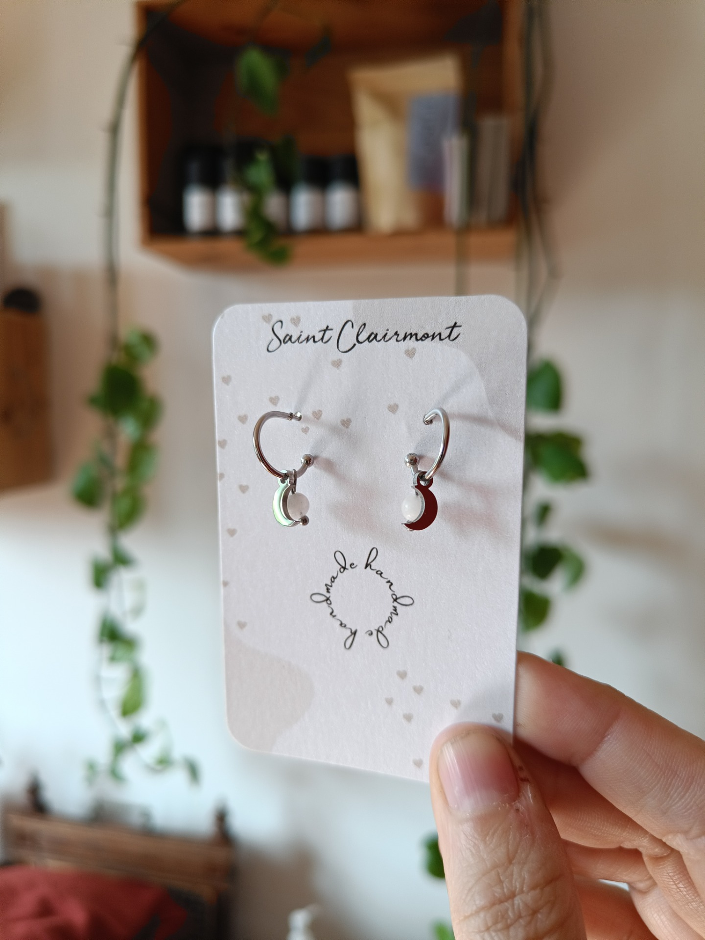 Stainless steel oorringetjes met een maan bedeltje en een Maansteentje.